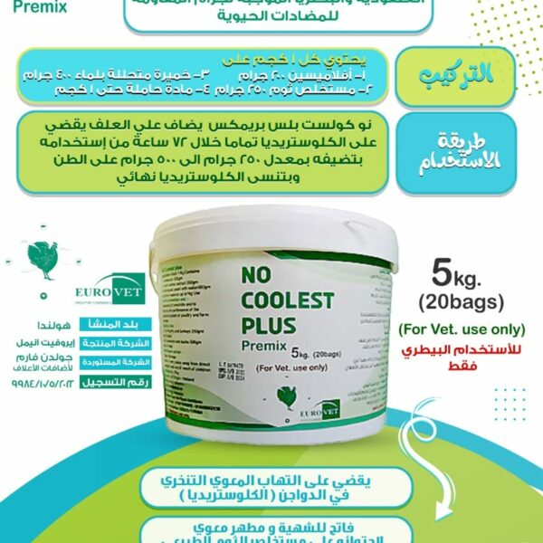نو كولست بلس بريمكس يضاف علي العلف يقضي علي الكلوستريديا تماما خلال 72 ساعة من استخدامه يتم اضافته بمعدل 250 جرام الي 500 جرام علي الطن.